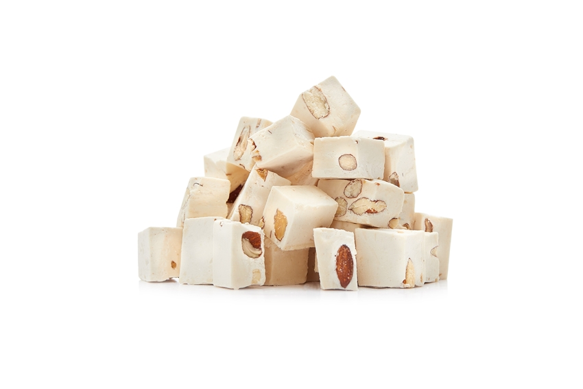 Nougat. Zucker, Glukosesirup, Pflanzenfett (Palmkern, Palm) MANDELN, HÜNEREIWEISSPULVER, Oblatenpapier (Kartoffelstärke, Wasser, Olivenöl) Aroma. Hergestellt in den Niederlanden. nicht lieferbar